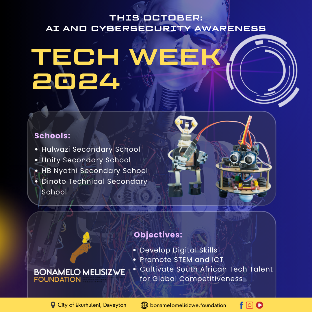 In response to the growing need for technology education in South African township and rural schools, where limited resources hinder students’ ability to engage with STEM subjects, the Bonamelo Melisizwe Foundation launched a Coding and Web Development pilot programme in December 2023, which led to the inaugural Tech Week promoting Robotics in 2024. This initiative was designed to provide high school learners with hands-on experience in coding and robotics, helping to bridge the skills gap and inspire interest in technology-driven careers and entrepreneurship.